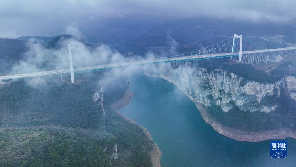 這是2月3日拍攝的貴州金烽烏江大橋(無(wú)人機照片)。