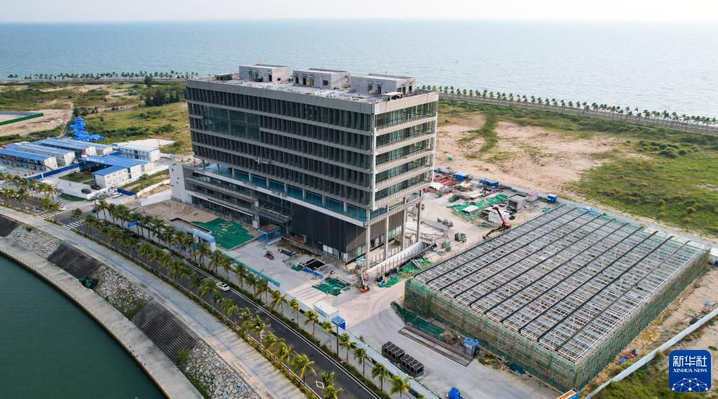 航拍海南三亞崖州灣科技城全球動(dòng)植物種質(zhì)資源引進(jìn)中轉基地起步區月亮島上的國家(三亞)隔檢中心項目(一期)(2022年10月16日攝,無(wú)人機照片)。