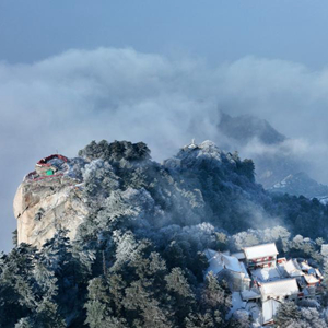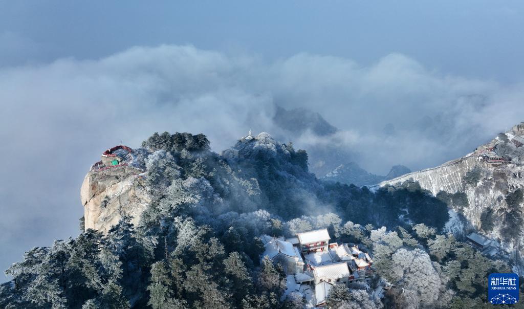 當日,雪后的西岳華山風(fēng)景區云霧繚繞,猶如人間仙境。