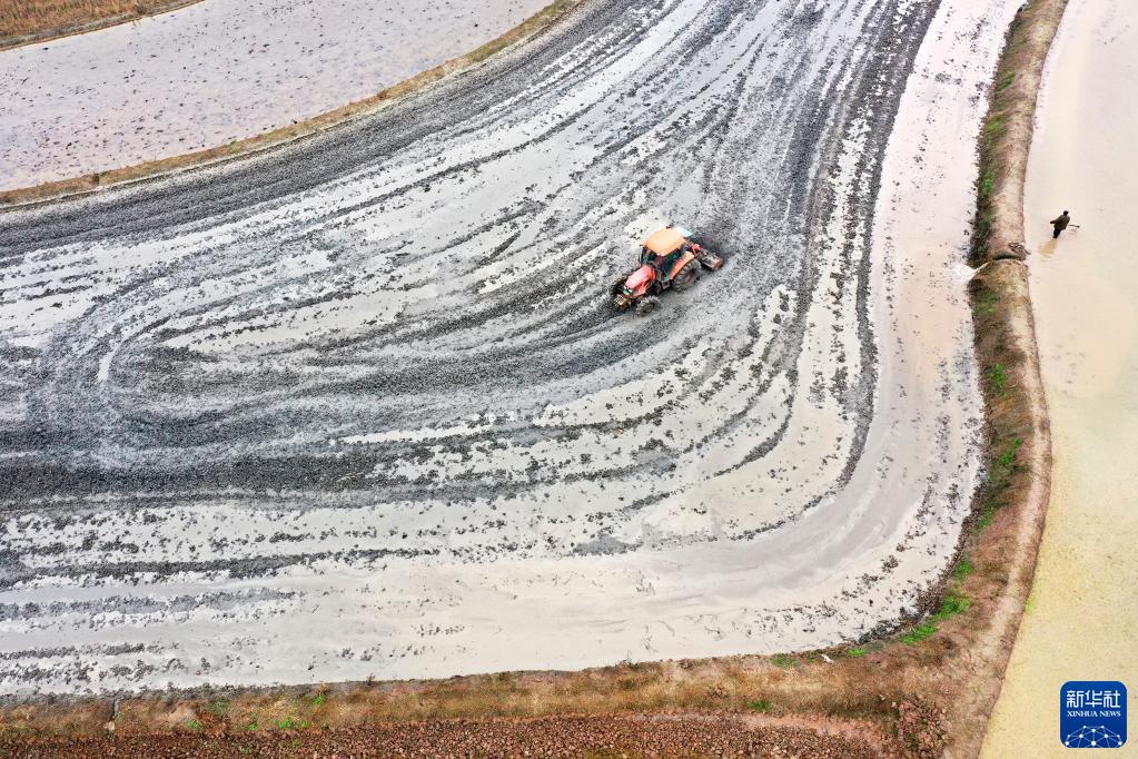 2月9日,四川省廣安市廣安區花橋鎮三黎村的農民在駕駛農機犁田(無(wú)人機照片)。