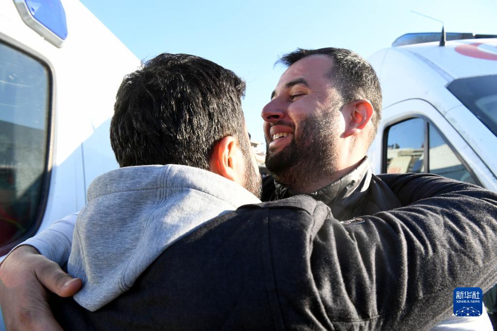 9日,在土耳其南部地震重災區哈塔伊省安塔基亞市,中土救援隊聯(lián)手救出兩名地震幸存者。