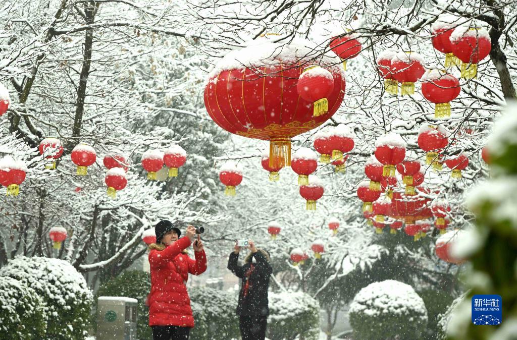 2月9日,市民在河北省石家莊市橋西區元南公園拍攝雪景。