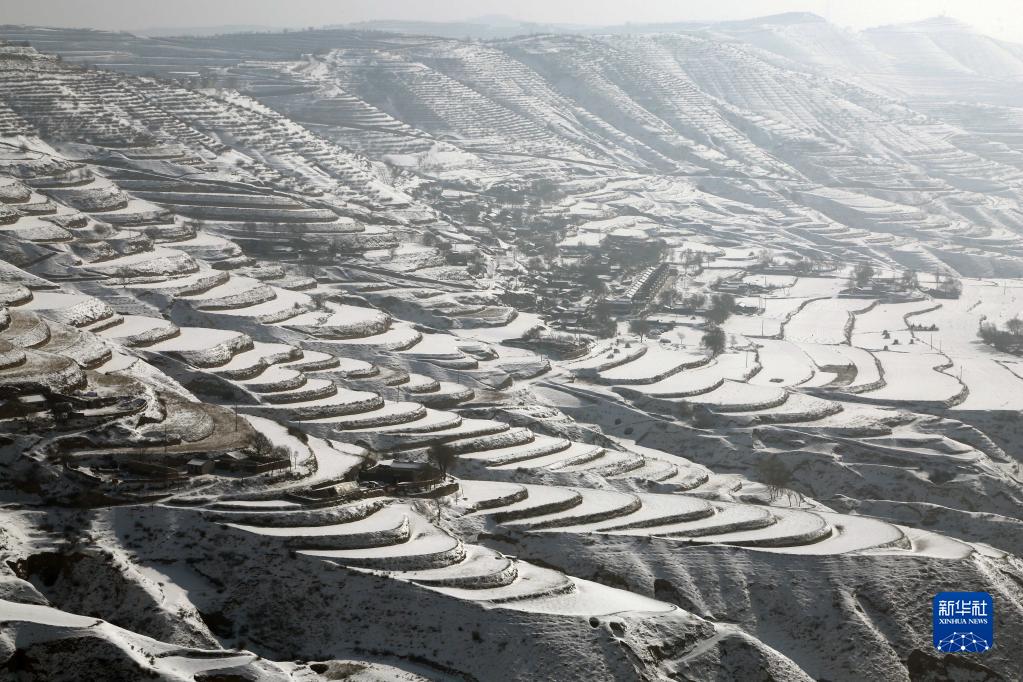 這是2月9日在甘肅省定西市安定區青嵐山鄉拍攝的梯田雪景。