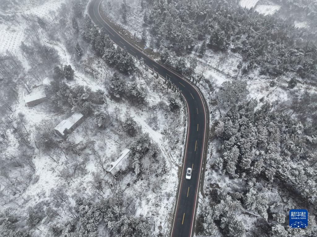 這是2月9日在河南省濟源市南山森林公園拍攝的雪景(無(wú)人機照片)。