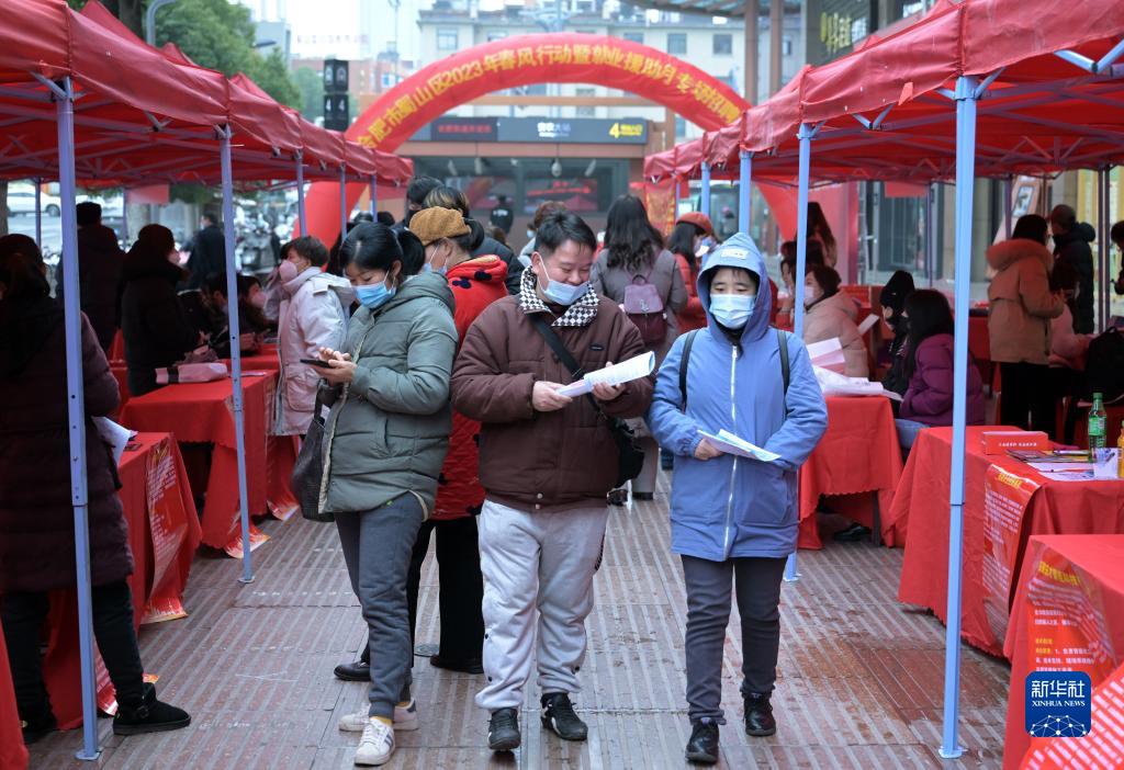 2月10日,求職者在合肥市蜀山區環(huán)球金融廣場(chǎng)舉行的招聘會(huì )上了解崗位信息。