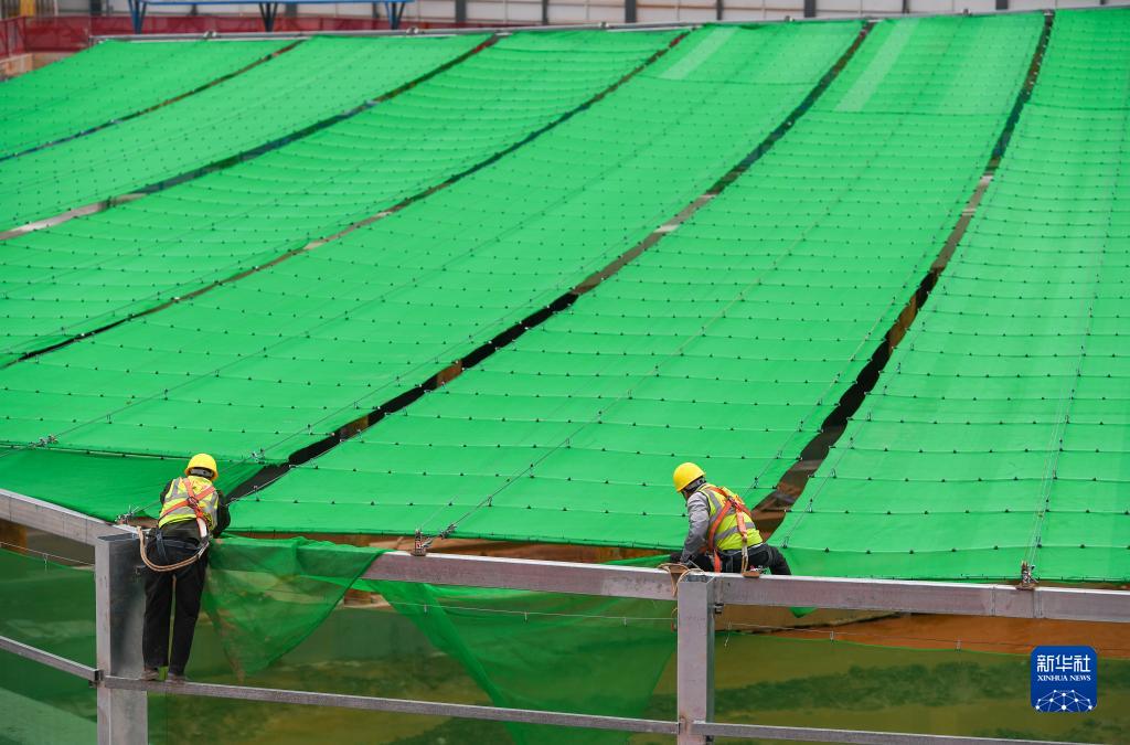 2月8日,在TCL先進(jìn)半導體顯示產(chǎn)業(yè)總部項目上,施工人員在對“天幕”進(jìn)行維保。