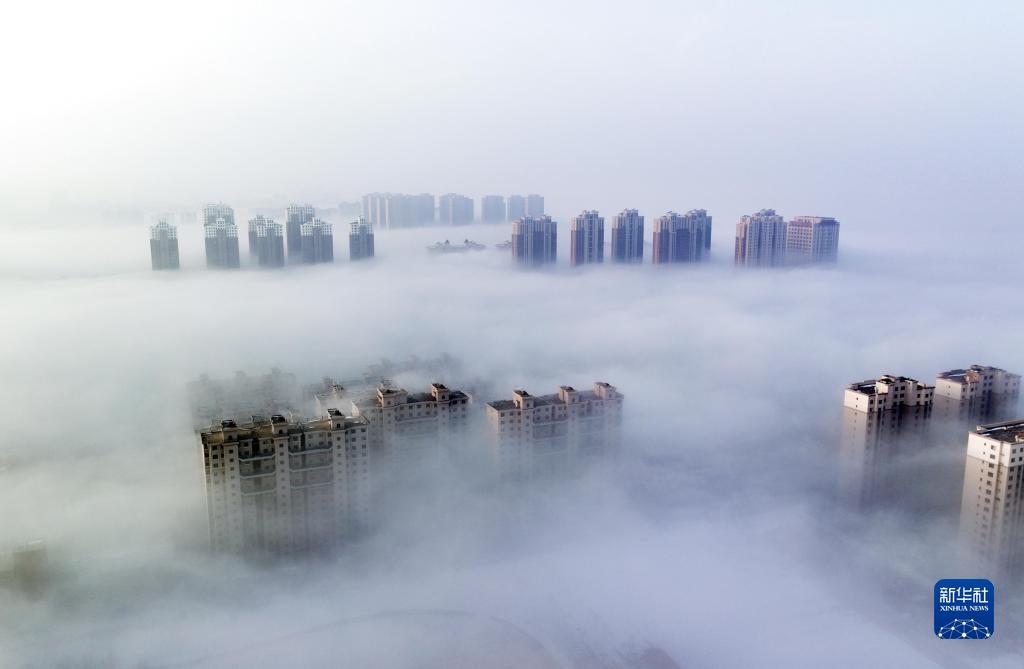 當日,寧夏銀川市出現平流霧景觀(guān),城市建筑若隱若現,如夢(mèng)如幻。