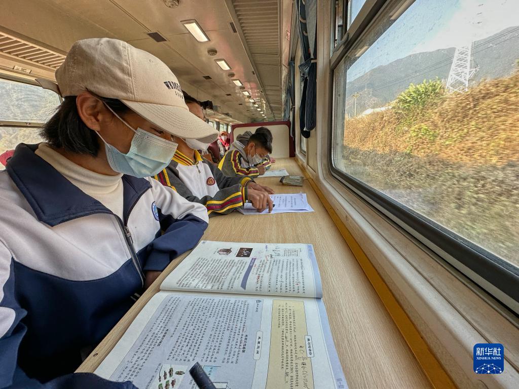 2月9日,學(xué)生在5633次列車(chē)上讀書(shū)。