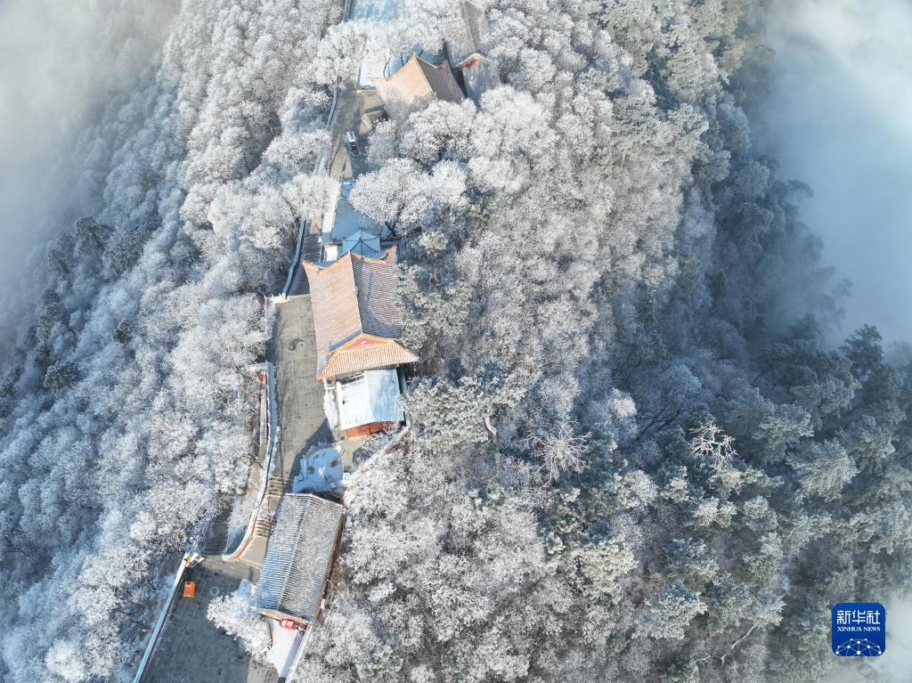 當日,雪后的河北唐山市遷西縣出現云海霧凇景觀(guān),山峰、樹(shù)木、古建筑在云霧中時(shí)隱時(shí)現,美如畫(huà)卷。