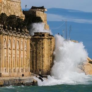 2月10日,在馬耳他斯利馬,大浪拍打海岸。