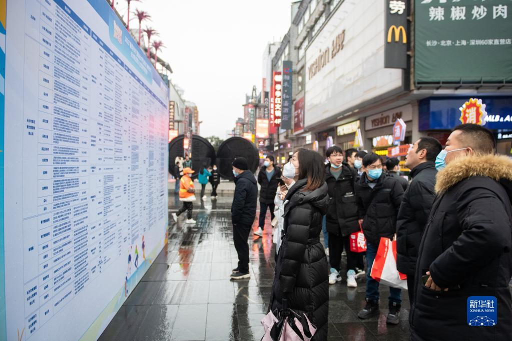 2月11日,在長(cháng)沙市天心區黃興南路步行街,求職者在查看招聘信息。