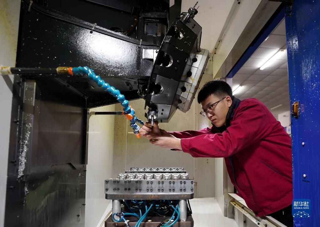 2月10日,工人在河北省唐山市海港經(jīng)濟開(kāi)發(fā)區一家紡織設備生產(chǎn)車(chē)間工作。