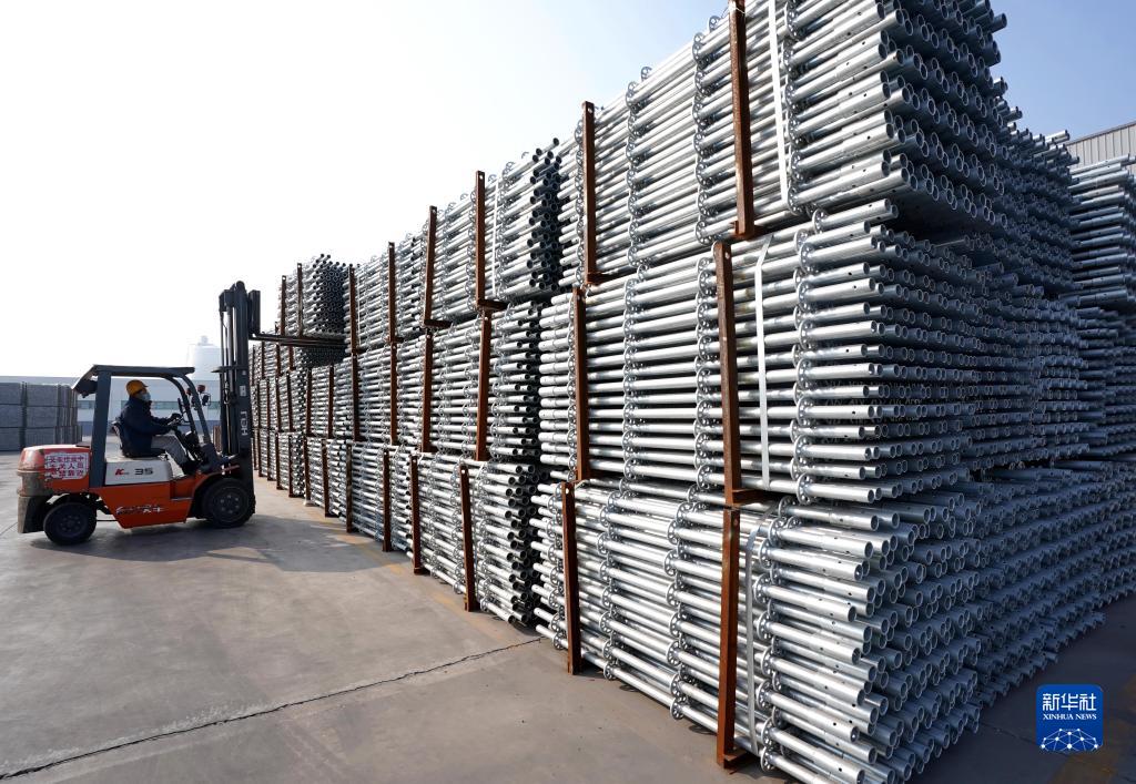 2月10日,唐山市海港經(jīng)濟開(kāi)發(fā)區一家支護裝備企業(yè)的工人駕駛叉車(chē)碼放產(chǎn)品。