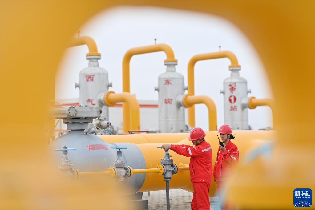 工作人員在新疆塔里木油田西氣東輸第一站巡檢(2023年2月6日攝)。新華社記者 李響 攝
