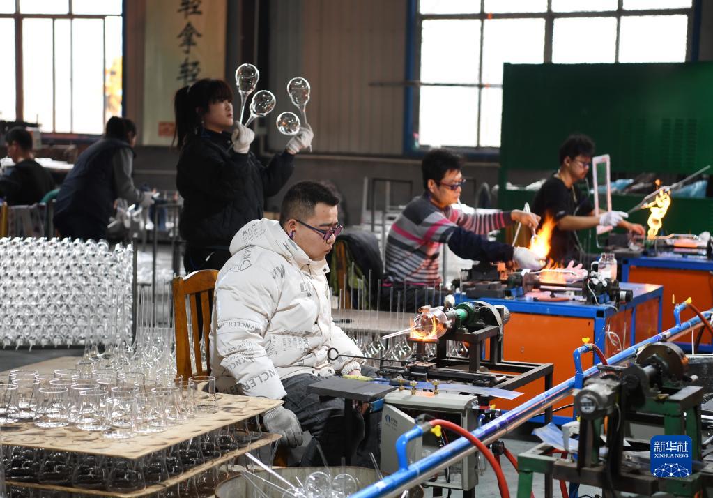 2月11日,河北省河間市一家工藝玻璃制品生產(chǎn)企業(yè)工人在車(chē)間內加工產(chǎn)品。