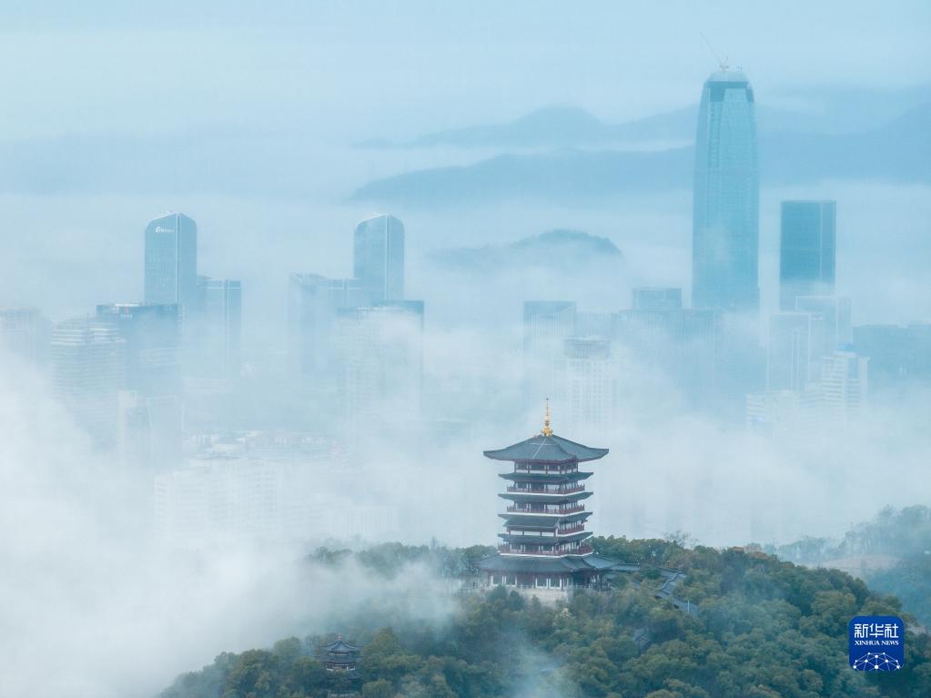 當日,浙江省臺州市椒江區,在暖濕氣流和降雨的共同影響下,霧氣像一層層薄紗將山川、河流、城市籠罩,朦朦朧朧,猶如一幅美麗的生態(tài)城市畫(huà)卷。