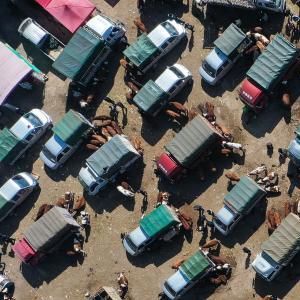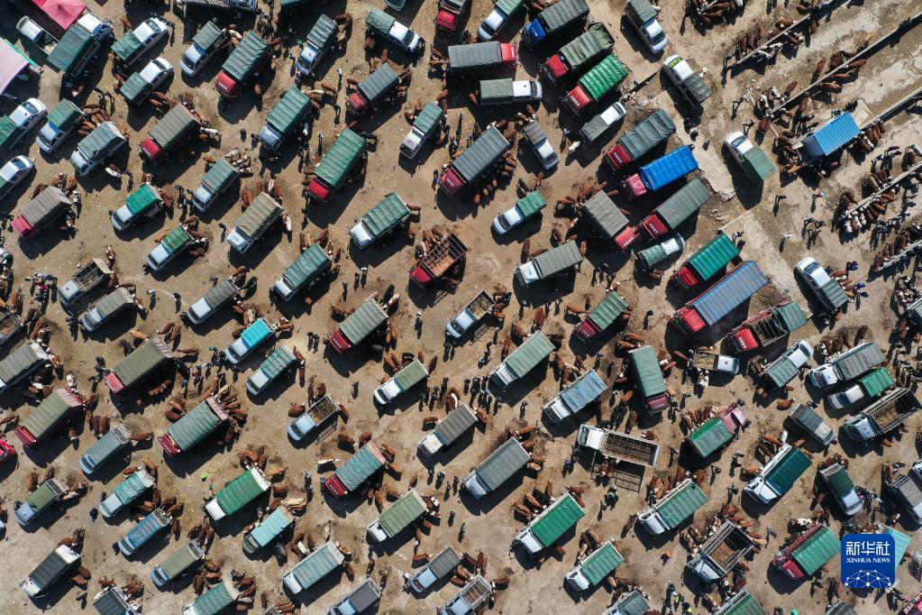 這是2月11日拍攝的貴州省威寧縣小海鎮牲畜交易市場(chǎng)(無(wú)人機照片)。