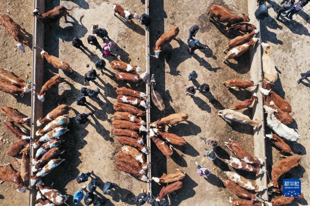 近日,貴州省威寧縣牛市交易迎來(lái)旺季。來(lái)自云南、四川、廣西及貴州當地的農戶(hù)和商販聚集到該縣小海鎮牲畜交易市場(chǎng),選購和銷(xiāo)售耕牛、能繁母牛等,以便及時(shí)投入到春耕備耕生產(chǎn)中。