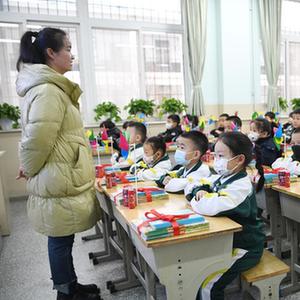 2月12日,銀川市興慶區實(shí)驗二小學(xué)生在布置一新的教室里迎來(lái)新學(xué)期。