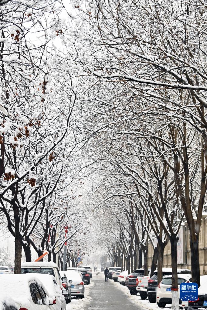 當日,山西省太原市迎來(lái)降雪天氣,雪落枝頭,景色迷人。