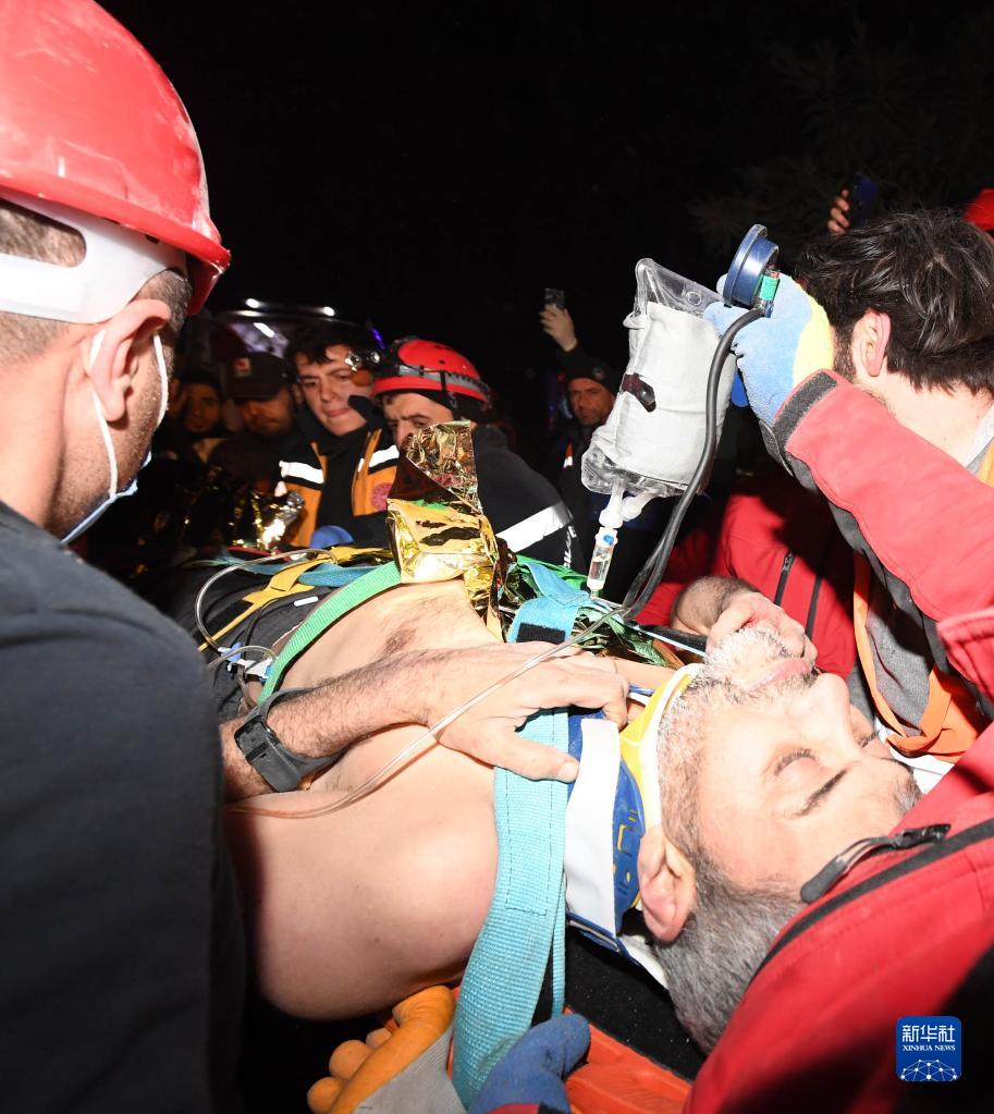 2月11日,救援人員在土耳其哈塔伊省安塔基亞市轉移幸存者。