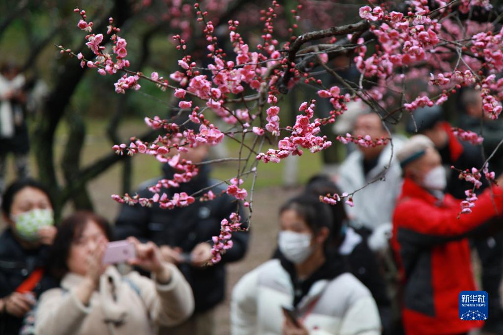 2月12日,游人在南京市雨花臺風(fēng)景區賞梅。