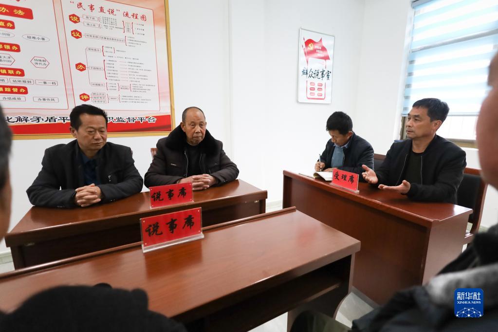 在隴南市徽縣銀杏樹(shù)鎮高坪村,“民事直說(shuō)委員會(huì )”成員調解村民鄰里糾紛(2月11日攝)。