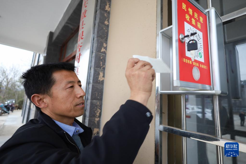 在隴南市徽縣銀杏樹(shù)鎮高坪村,“民事直說(shuō)委員會(huì )”成員取出“民情民意”收集箱里的群眾來(lái)信(2月11日攝)。