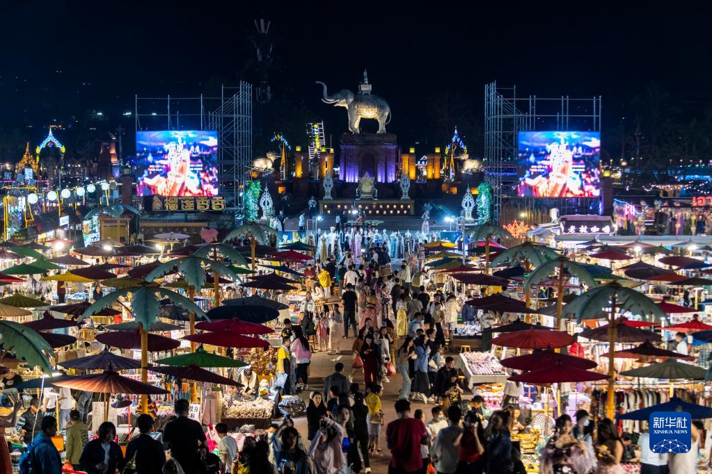 夜幕降臨,位于云南省西雙版納傣族自治州景洪市的告莊西雙景星光夜市流光溢彩,游人如織。富有民族風(fēng)情的旅拍受到游客青睞,成為熱門(mén)體驗項目,拉動(dòng)城市“夜經(jīng)濟”發(fā)展。