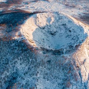五大連池世界地質(zhì)公園老黑山火山口景色(2月12日攝,無(wú)人機照片)。