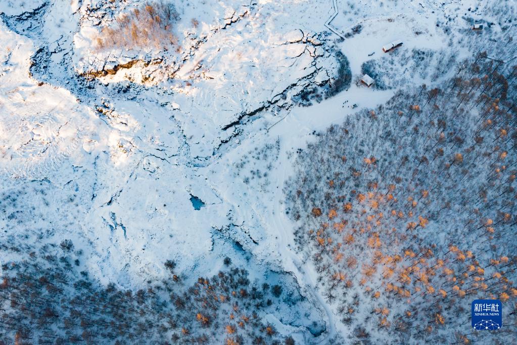 五大連池世界地質(zhì)公園老黑山附近的熔巖臺地(2月12日攝,無(wú)人機照片)。