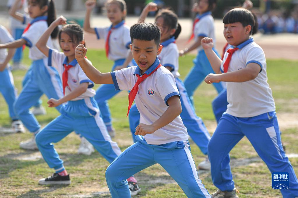 2月13日,海南省屯昌縣新興中心小學(xué)學(xué)生在演練武術(shù)。