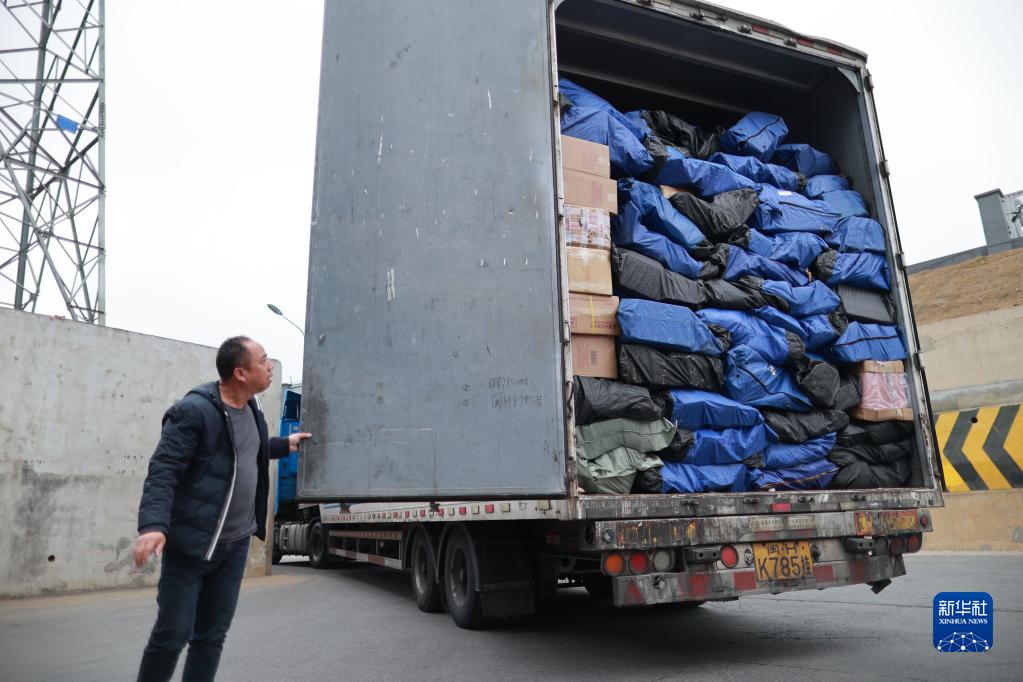 2月13日,一名貨車(chē)司機在貴州快遞物流園內打開(kāi)運送快遞的貨車(chē)車(chē)門(mén)。
