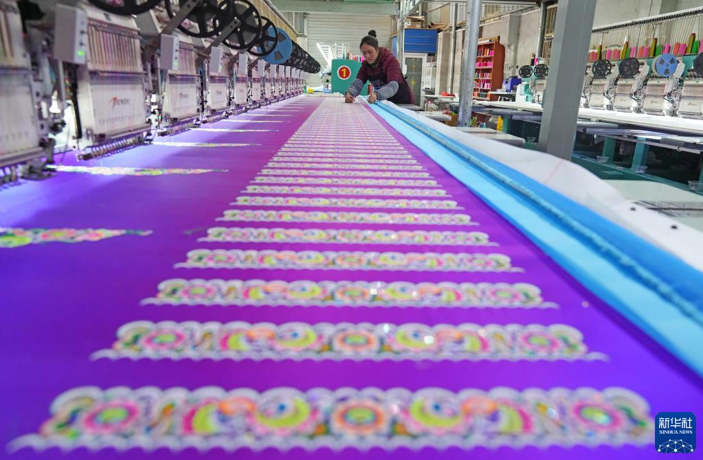 2月13日,在廣西柳州市融水苗族自治縣一刺繡公司就業(yè)幫扶車(chē)間,工人剪除成品上多余的線(xiàn)頭。