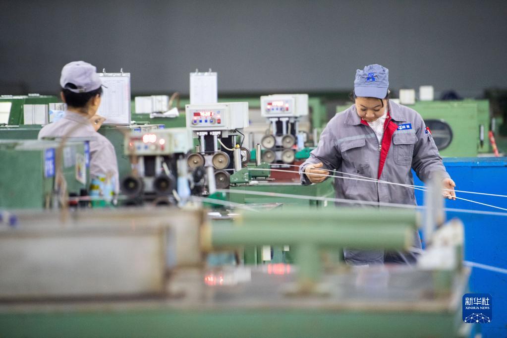 2月14日,在位于株洲市淥口經(jīng)開(kāi)區南洲工業(yè)園的株洲兆源機電科技有限公司,工作人員在制造電磁線(xiàn)。