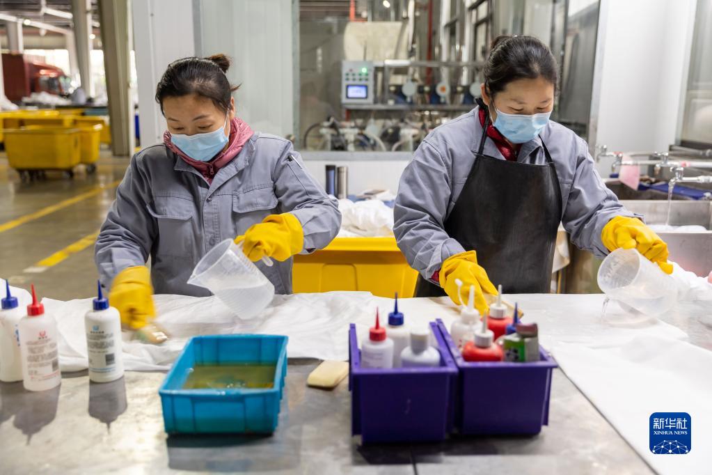 2月14日,洗滌工對污漬嚴重的布草進(jìn)行人工清潔。