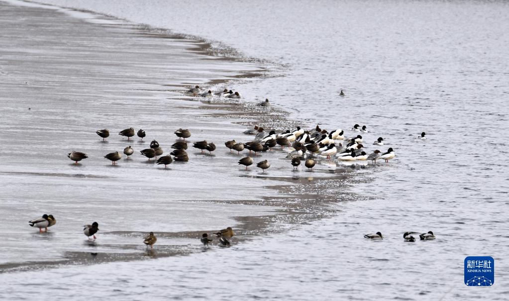 各種鳥(niǎo)類(lèi)在北京園博湖棲息(2月14日攝)。