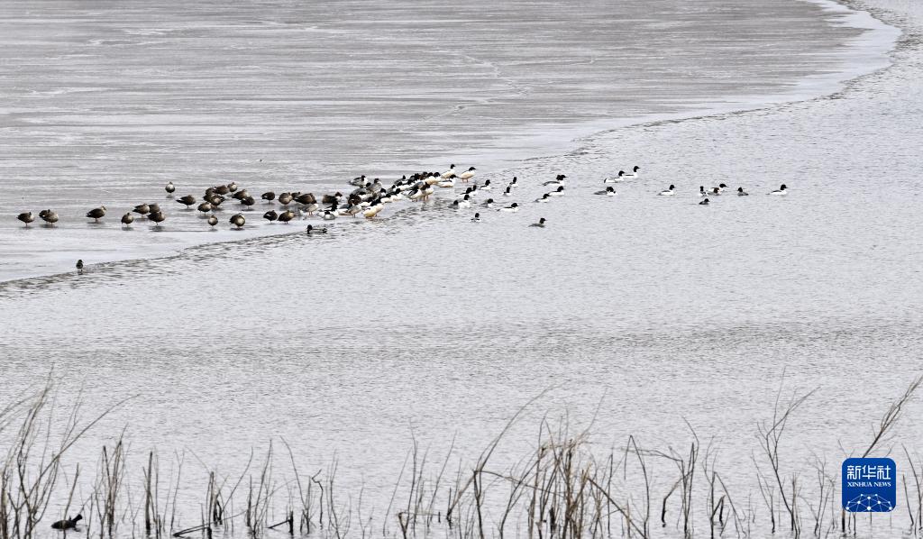各種鳥(niǎo)類(lèi)在北京園博湖棲息(2月14日攝)。