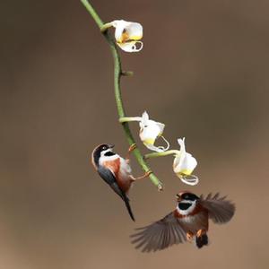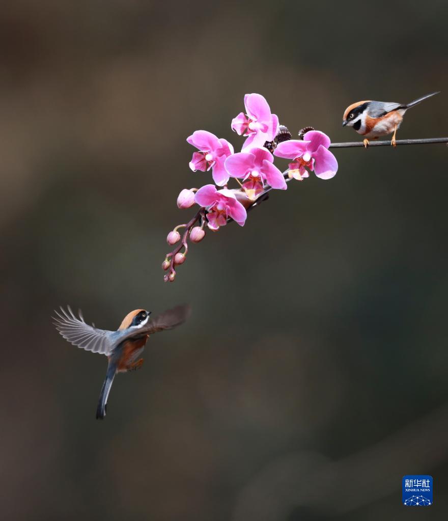 近日,江蘇鎮江西山水庫附近山花開(kāi)放,吸引紅頭長(cháng)尾山雀前來(lái)覓食小憩。