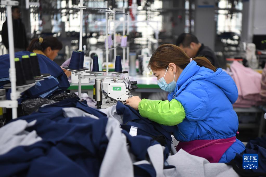 2月15日,工人在湖南省株洲市蘆淞區的湖南歐微時(shí)尚集團生產(chǎn)服裝。