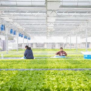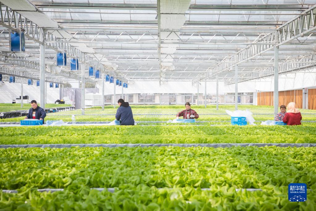 2月15日,工作人員在蔬菜工廠(chǎng)采收葉菜。