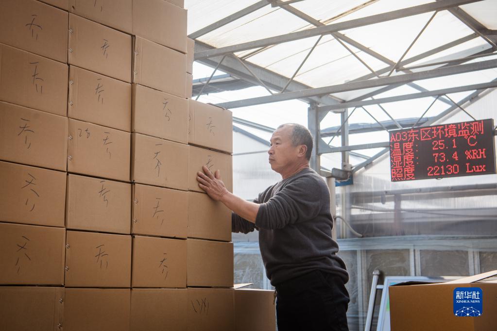 2月15日,工作人員在育苗大棚進(jìn)行蔬菜苗出圃作業(yè)。