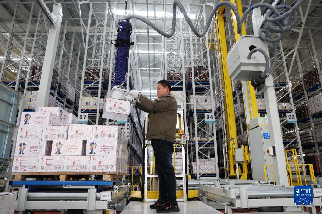 2月15日,在河北省邯鄲市永年區一緊固件生產(chǎn)企業(yè),工人在智能倉儲車(chē)間操控設備裝卸貨物。