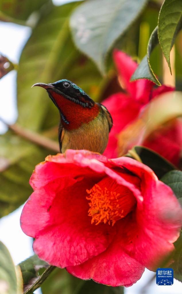 2月15日,在貴州省玉屏侗族自治縣朱家場(chǎng)鎮茅坡村拍攝的叉尾太陽(yáng)鳥(niǎo)。