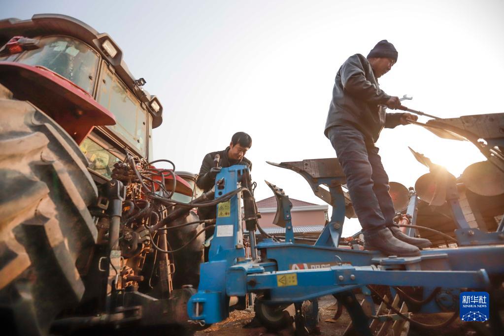 2月16日,農民在遵化市西留村鎮的一家農機服務(wù)專(zhuān)業(yè)合作社檢修旋耕機。