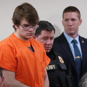 2月15日,美國布法羅槍擊案兇手佩頓·金德倫在紐約州伊利縣一家地方法院出席庭審時(shí)發(fā)言。