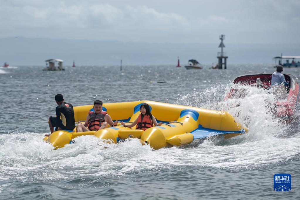 2月13日,中國游客在印度尼西亞巴厘島伯諾阿灣體驗水上娛樂(lè )項目。