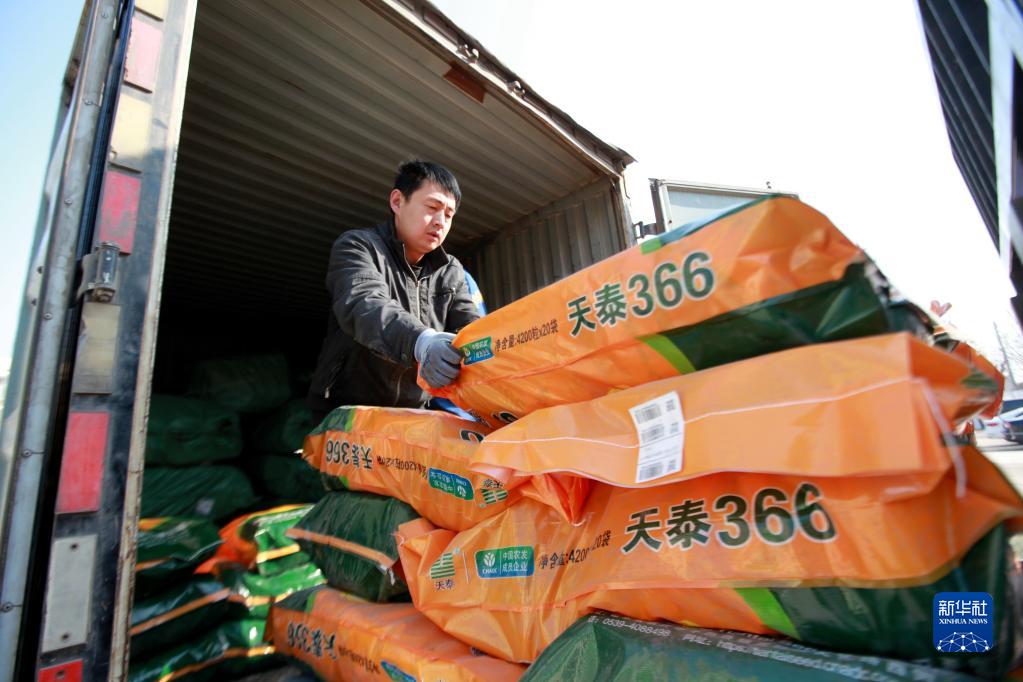 2月16日,在山東省臨沂市平邑縣一家種業(yè)公司,工人將玉米種裝車(chē)外運。