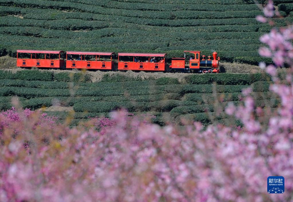 2月17日,小火車(chē)在漳平市永福鎮的臺品櫻花茶園里穿行。
