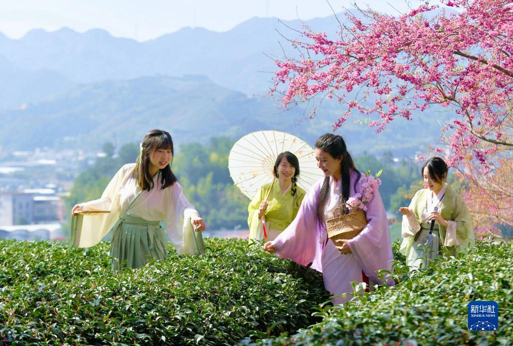 福建漳平:萬(wàn)畝茶園櫻花開(kāi)